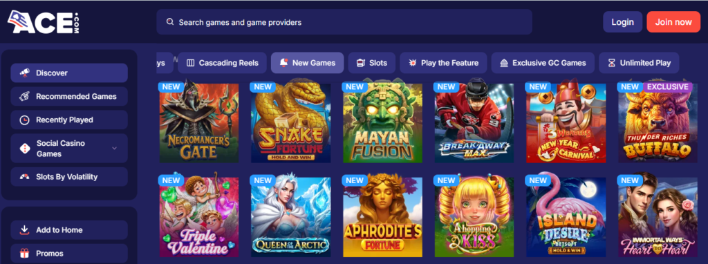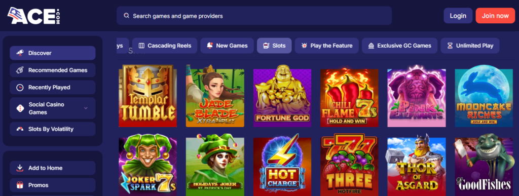 One of the biggest reasons ACE stands out is its extensive game selection. The platform features hundreds of popular social casino games, inspired by real casino experiences and powered by top-tier software providers.