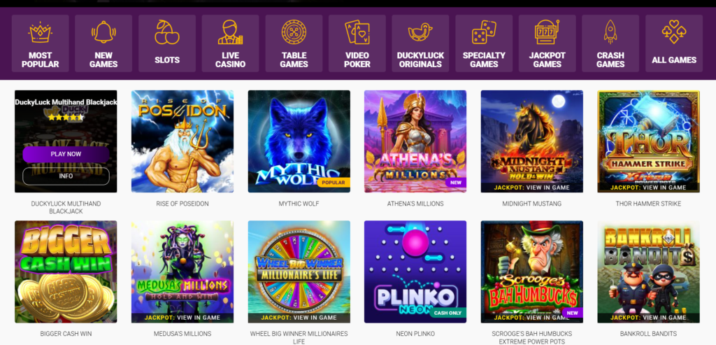 Ducky Luck Casino provides a variety of casino games designed to match different player preferences.