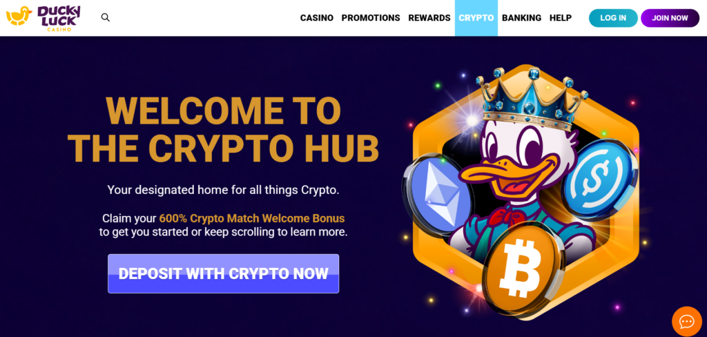 Ducky Luck Casino supports multiple secure payment methods, including cryptocurrency.